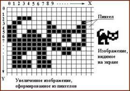 В результате пространственной дискретизации графическая информация представляется в виде растрового изображения, которое формируется из определенного количества строк, содержащих, в свою очередь, определенное количество точек